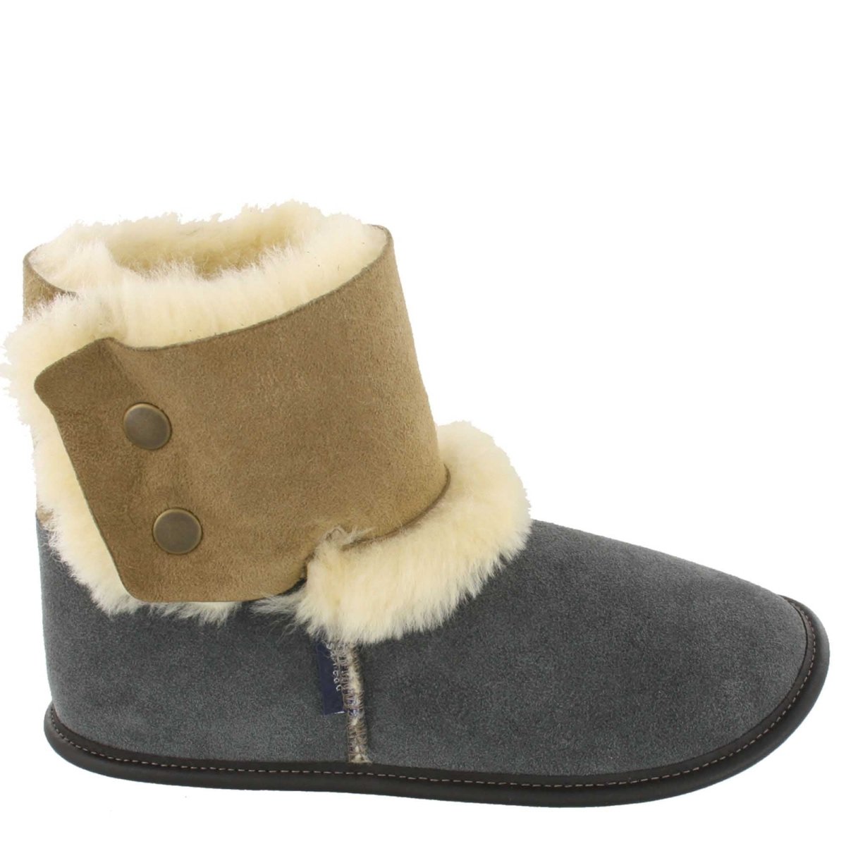 Pantoufle mouton et suède gris pour homme de style bottillon en mouton retourné
