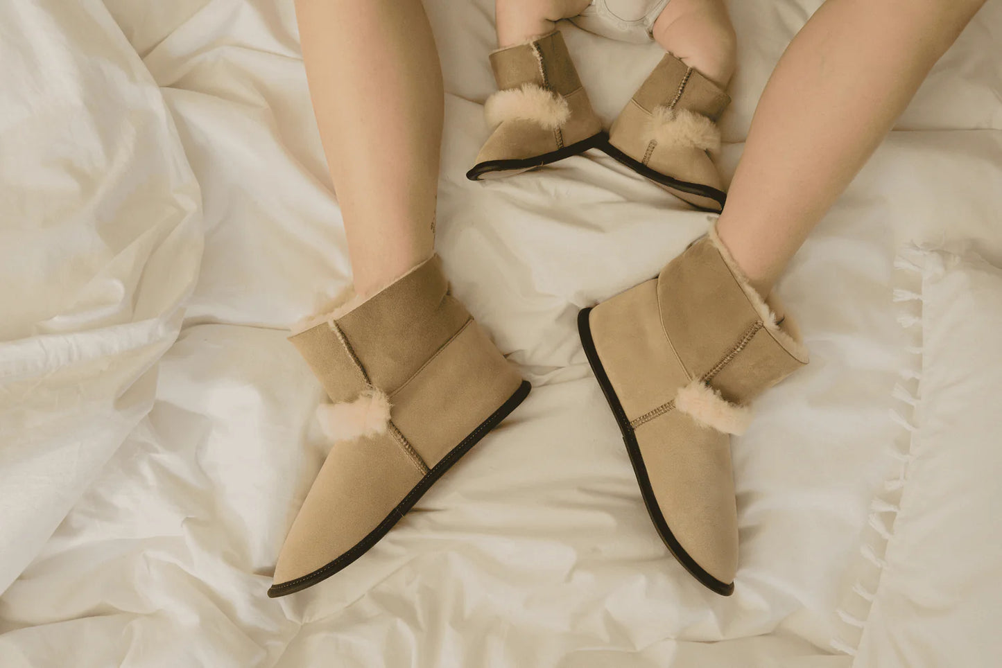 Atelier Garneau designs and crafts superior quality sheepskin slippers and accessories. Working from its workshop in the Eastern Townships, Quebec, its team of artisans preserves and passes on a rich tradition of craftsmanship, creating pieces that inspire a return to the essentials. Since the company's inception, Atelier Garneau has used only sheepskins from New Zealand and Australia. Carefully selected from the world's most renowned brands, our sheepskins boast an incomparable sheen and the highest density on the market, giving each piece a refined look and a natural balance of lightness, comfort, and durability. Always seeking the finest and most luxurious materials, our leathers and suedes are renowned for their distinctive softness, suppleness, and silky feel.